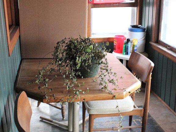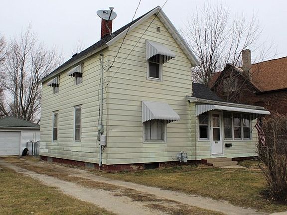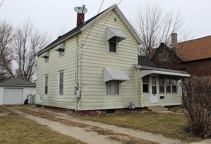 Cute 1.5 story home with 3 bedrooms, 1 bath, enclosed front porch, 1.5 car garage with an attached covered patio and a fenced yard. The main floor features an eat in kitchen with older but nice wood cabinetry, a living room, 1 bedroom and a full bath with tub/shower combination, single sink with vanity and stool. The second floor has 2 bedrooms. The stove, refrigerator, washer and dryer all stay but are not warranted. Laundry area is currently in the kitchen but there is a nice rear enclosed porch with storage cabinets that could be made into the first floor laundry. Per owner: roof with tear off summer of 2019, c-air does not work and the dishwasher is currently not connected to the water lines. With acceptable offer, seller will provide a credit for a new furnace for buyer at closing.