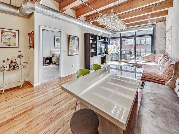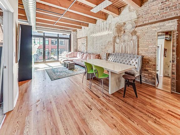 Welcome to your urban sanctuary in the heart of River North! This 2-bedroom, 2-bathroom loft in the historic boutique building at 520 West Huron is a true city oasis. As you step inside, the space immediately captivates you with its timeless charm-exposed brick walls and massive timber beams adorn the soaring 14 ft ceilings, creating an ambiance that's both cozy and industrial chic. The entire loft is bathed in the warm glow of Lightology lighting and custom California closets in the foyer coat closet and both bedrooms. The open-concept living area is generously sized, perfect for entertaining friends or simply relaxing in your own urban haven. The kitchen has been thoughtfully maintained, featuring stainless steel appliances, granite countertops, a convenient breakfast bar, and maple cabinetry. The adjacent living room adds an extra layer of quaint with your private balcony just outside beckons for your morning coffee or evening unwind. Discover the well-appointed bedrooms, each offering a unique blend of character and modern convenience. The large, fully enclosed primary suite, boasts an updated en-suite bathroom with a double vanity, a walk-in shower with double shower heads, glass doors, and a bench for added luxury. The second bedroom was enclosed with a door and glass separation from the main room perfect for all uses. And enjoy easy access to updated 2nd full bath. In-unit laundry add to the comforts of this home, making everyday living a breeze. Secured covered garage parking space is available for 25K. River North Commons is more than just a building; it's a vibrant community. With 24-hour door staff, a fitness room, extra storage, a community room and roof deck on the 7th floor, on-site maintenance and management. it offers the amenities you desire. Plus, your furry friends are welcome here especially with easy access to the Larrabee dog park basically across the street! The location is wonderful, enjoy the bustle of the city yet outdoors await with the Montgomery Park and playground one street away, perfect for outdoor enjoyment. The Riverwalk is just around the corner, providing scenic strolls along the water. And for your daily commute or exploring the city, you have easy access to public transportation, including CTA Brown Chicago, CTA BLUE Chicago, BUS 66, and BUS 151. This property seamlessly marries the best of both worlds: historic charm with modern upgrades, a central location with access to urban conveniences, and a community that welcomes you home. Don't miss this opportunity to experience loft living at its finest in River North!