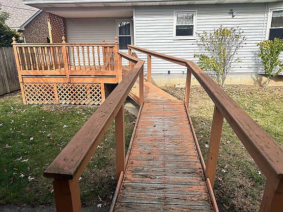 Enclosed front porchBasement for extra storageBack deck with rampDining areaLaundry room