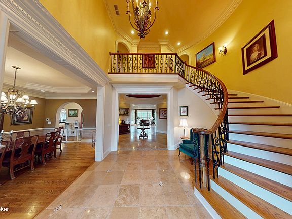 This exceptional property boasts sophistication and elegance, evident in every detail of its indoor-outdoor design. With an expansive, open floor plan, its 7,500 square feet are perfect for large-scale entertaining, leisure, and luxury living. Upon entering, soaring ceilings and a grand staircase welcome you to a formal living room with stunning backyard views. The first level includes a chef's kitchen featuring a barrel vault ceiling, custom wood cabinetry, granite countertops, heated tile floors, and stainless-steel appliances. A butler's pantry and mudroom round out the kitchen area. The first level continues with a formal dining room, great room, office, and the spacious primary suite which includes dual full bathrooms, heated tile floors, custom walk-in closets, central This exceptional property boasts sophistication and elegance, evident in every detail of its indoor-outdoor design. With an expansive, open floor plan, its 7,500 square feet are perfect for large-scale entertaining, leisure, and luxury living. Upon entering, soaring ceilings and a grand staircase welcome you to a formal living room with stunning backyard views. The first level includes a chef's kitchen featuring a barrel vault ceiling, custom wood cabinetry, granite countertops, heated tile floors, and stainless-steel appliances. A butler's pantry and mudroom round out the kitchen area. The first level continues with a formal dining room, great room, office, and the spacious primary suite which includes dual full bathrooms, heated tile floors, custom walk-in closets, central shower with dual shower heads, a Jacuzzi tub, and an integrated laundry room. Large windows throughout bring natural light to the living room, den, and stone fireplaces.