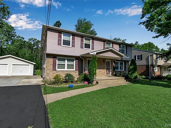 Meticulously kept duplex in the Frontier school district on a quiet street. 3 bedrooms, 1.5 baths in both apartments. Beautifully landscaped private lot on almost 1/2 an acre with woods behind. Both kitchens have doors to the beautiful backyard. One apartment has newly remodeled kitchen and baths. Rents are low and did not include garage spaces. Rents should be approx. $1500-$1700/month per side. Newer 2.5 car heated garage with electric and gas hooked up. Also, another large shed in back perfect for lawn mower and tools etc... Extra large driveway. Close to Frontier schools and park. 2-year old roof. Move in ready. Live in one side and rent out the other. Offers, if any, due July 31 at 5:00p.