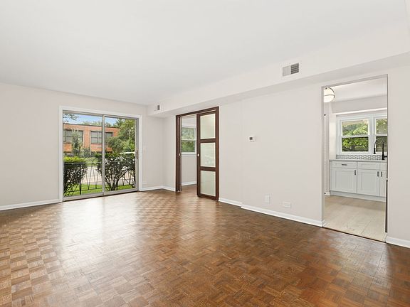 Move-in ready condo near downtown Skokie has just been remodeled with a new kitchen including new cabinets and new stainless Samsung appliances, as well as new bathroom finishes. The large living room has sliding door access to the private terrace. The dining room has a pocket door so it could be a private office or a second sleeping area. There are freshly-stained, restored parquet floors in the living and dining rooms. The large bedroom has an ample-sized walk-in closet. The laundry is on the same floor and right outside your door. There is an assigned outdoor parking space (No. 5), a large private storage area, and a bike room. Very well-maintained property - the HVAC unit for this condo is just a few years old and the building has a newer roof and elevator. Great location, walk to restaurants, farmer's market, grocery stores, library, Metra, etc. No pets or rentals allowed.