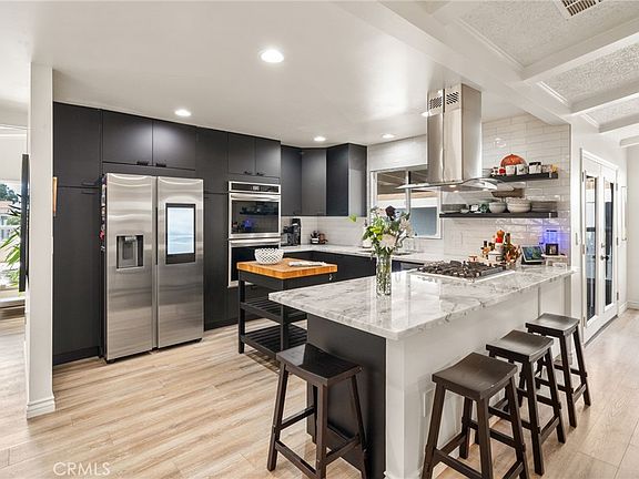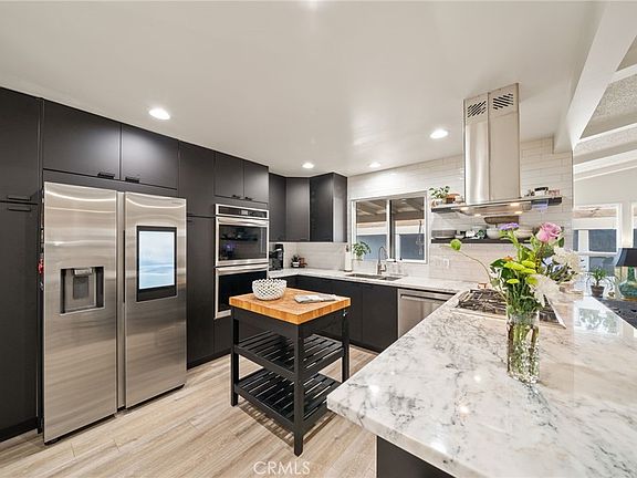 Welcome to The Groves, a very active, premier 55+ community in the heart of Irvine. The centerpiece and focal point of this upscale home is the completely remodeled and redesigned gourmet kitchen with an open concept to the family room. Features include marble countertops, custom soft close cabinets and drawers with access lighting, pull out shelves, chef quality stainless steel appliances (including refrigerator,) 5 burner gas cooktop, double ovens, over-sized sink and more! Natural light fills the huge family room from the French doors that lead to the front deck. The hallway to the primary suite is lined with cabinets for storing holiday decorations, games, crafts, etc. The guest bedroom has access to the remodeled guest bathroom. The floor plan is unique within the community and offers an open flow that captures the essence of this amazing home. Additional upgrades include smart home technology (control most features of your home from your phone or computer,) a 4 month-old new roof, energy saving dual pane vinyl windows, tankless water heater, beautiful laminate flooring, retractable screen doors, and vinyl fencing. Discover a vibrant lifestyle at The Groves, where owning a home means owning a share in the land, and no space rent required. This community offers a wealth of amenities: a year-round heated pool and spa, gym, sauna, sports courts (tennis, pickleball, basketball), a putting green, and lawn bowling. Host gatherings at BBQ areas or enjoy the clubhouse with banquet facilities, a game room, and a hair salon. Tap into your creativity in the ceramic studio or woodshop; or relax in the tranquil garden. RV spaces, a camping club, and an Activities Coordinator ensure convenience and fun for all. With low monthly maintenance fees and discounted Cox TV/Internet options, The Groves combines comfort, community, and modern convenience—where living becomes a lifestyle.