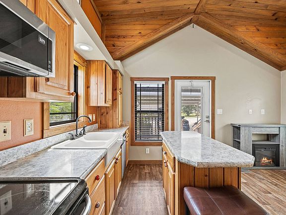 5200 Lake Shore Ln #48, Denton, TX 76208 | $ 79,900 | Built in 2016 | 396 sq ft. Discover the perfect blend of charm, comfort, and efficiency in this adorable cabin-like tiny home located in The Shores MHC, a welcoming 55+ community on Lake Lewisville. This 1-bedroom, 1-bathroom home is thoughtfully designed with every detail in mind. The kitchen features an island that separates it from the living room, creating an open yet functional layout. A loft area offers flexible space for a game room, office, or creative studio. The modern bathroom adds a fresh, stylish touch, while the wood-burning fireplace makes the living space extra cozy during cooler months. Step outside to enjoy the open porch-ideal for relaxing afternoons-or make use of the spacious lot, perfect for plants, gardening, or small crops. A covered carport fits up to 2 vehicles, while the oversized shed with air conditioning provides excellent storage or a comfortable workspace. The durable metal roof adds long-lasting protection, especially during Texas hail storms. This home may be tiny, but every inch is smartly designed to maximize comfort, functionality, and charm. Schedule your tour today and experience cabin living in a community you'll love.