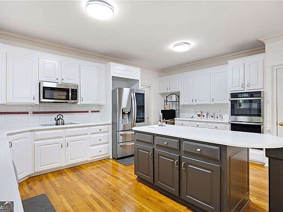 Perfect multi-generational floor plan with some of the largest square footage homes available. Highly rated school system, Sought-after community. Nestled on .9 acre, private. Floor plan boasts a 2nd kitchen, 6 bedrooms and 5 full bathrooms, a circular driveway, 3-car garage, and timeless curb appeal. Step into the two-story foyer and you'll immediately notice the rich hardwood floors and custom wood shutters that carry throughout the main level. The home's thoughtfully designed layout features a formal dining room with a tray ceiling and a formal living room/piano room. Two-story great room stuns with soaring cathedral ceilings and a fireplace. Triple French doors lead to the oversized eat-in kitchen, complete with an abundance of white cabinetry, built-in desk/workspace, stainless steel appliances including a double oven, center island, and pantry. A main level laundry with built-ins conveniently located off the kitchen and garage. The light and bright sunroom opens to the rear deck, seamlessly blending indoor and outdoor living. The main-level bedroom and full bath are perfect for visitors/family/friends. Upstairs, the luxurious primary suite impresses with tray ceilings, a sitting room, flex space and an huge custom closet with built-ins. The amazing ensuite bathroom is your personal retreat with dual vanities, soaking tub, shower, bidet, and private water closet. 3 additional bedrooms - one with an ensuite bathroom and 3rd full bathroom completes the second floor. The finished terrace level offers incredible flexibility, with a second living room and a 2nd fireplace, media room, full bath, bedroom/office, 2nd kitchen, and bar area-perfect for multi-generational living or entertaining. Step outside to your private backyard oasis, complete with an in-ground pool with diving board, covered patio with dry-below system, and fully fenced backyard. Located just minutes from The Avenues of West Cobb, top-rated schools, excellent dining, and numerous parks. This home offers the perfect balance of luxury, privacy, and convenience.