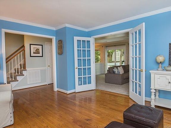 Upon entering, you'll be greeted by the formal living room which features hardwood floors, crown molding and French doors leading to the family room. The cozy family room is carpeted and offers built-in cabinets and a wood-burning fireplace. The large, eat-in kitchen is open to the family room and has a large dining space in front of the bay window. You'll also have a formal dining room dressed with crown molding, chair rails and a chandelier. All 5 bedrooms are on the 2nd floor and are ample size. The master has a walk-in closet and an en-suite bath with dual vanities. Plenty of storage with the floored, walk-up attic. Outside you have a large deck, wooded backyard, fire pit and detached shed for additional storage. Other notable features include a newer roof, replacement vinyl windows, 2 car attached garage, and natural gas. And let's not forget about Swift Creek Reservoir . . . Across the street and 3 houses down is a secluded trail leading straight to the water. The park at the end of the trail includes a canoe rack, deck overlook, and access to the water. This is in addition to all the amenities offered by Woodlake and close proximity to Hull St restaurants and shopping.
