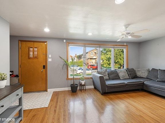 Great Garfield Ridge corner location. Charming brick raised ranch. Main floor with 2 bedrooms, living room, updated bath, eat-in kitchen with stainless steel appliances. Full finished basement currently a recreation room/home office along with a laundry room. House features hardwood floors throughout. Elevated deck with Pergola overlooking spacious yard with concrete patio. Fully fenced yard great for entertainment, party garage door, 2 1/2 car garage and side drive off alley. Great location for city workers and downtown lovers. Easy commute to downtown by Archer Ave, Orange Line, I55. Close to shopping, restaurants, library, schools, churches and parks. This home is very well taken care of and move-in ready!!