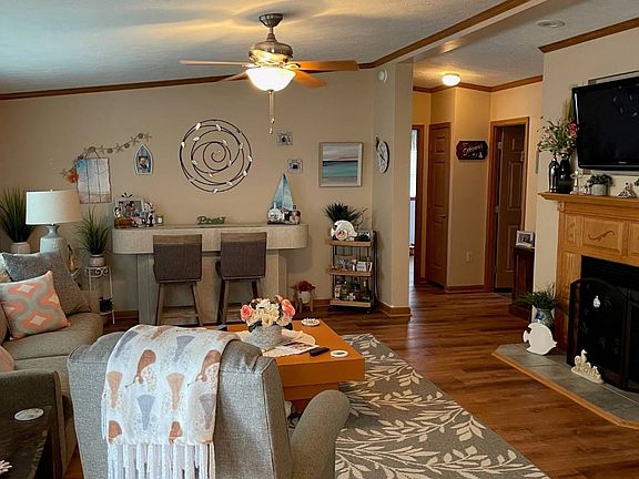 On The Water!! Must See! Stunning 3 Bedroom, 2 Bath Pine Grove model home with large sunroom, deck, patio and storage shed. Living room with fireplace, gourmet kitchen, wood flooring, master bath with double sinks, garden tub and separate shower, laundry room, central A/C and heat, alarm system, and much more!