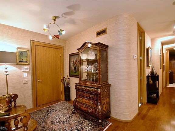 Fabulous condominium located RIGHT OFF THE LOBBY! This spacious 2000 sq. ft., luxury condominium has elegant details and quality finishes .The large OPEN CONCEPT Great Room features two wonderful seating areas (a living room and family room) , moldings, custom built-ins, and an inviting dining area with access to the private patio..Beautiful galley style eat-in kitchen with stainless appliances and sprawling granite counters . In-suite laundry with lots of cabinetry. . Large master bedroom with walk-in closet, walls of additional custom built-in closets and glamour . There is a second Bedroom ( or den or office , whatever your needs may be) and second full bathroom. Three Village has direct access to Acacia Reservation that includes a 1.7 mile paved loop trail. Amenities include 24 HR security, garage parking, exercise room, indoor pool, tennis courts, terrific guest suits, fantastic party room & more. The entire terrain of the The Three Village high rise has been beautifully landscaped and sculptured into an oasis of trees and flowers. Minutes from excellent shopping, restaurants , the freeway ,close to University Circle , museums , hospital and theater.