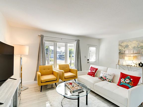 Relax in your private Heated pool, fully enclosed with a brand-new pool cage and fresh pavers (2023), perfect for lounging under the Florida sun. Inside, you'll find a remodeled kitchen (2021) designed for comfort and functionality, along with a newer roof (2022) for added peace of mind.