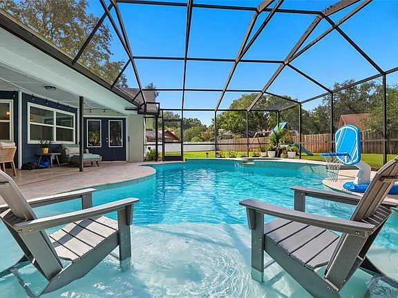 Under contract-accepting backup offers. Welcome to this stunning Tampa Palms 4 bedroom plus office pool home with spa on a cul-de-sac lot, tucked away on a tree lined street with a .38 acre fenced yard. Brimming with character, this home showcases designer light fixtures, custom accent walls, and a warm, inviting feel throughout. With over $200K in recent upgrades, this home will immediately capture your attention. The sellers thoughtfully carried out the Karastan luxury vinyl flooring and large baseboards throughout the home. As you enter this gorgeous home, you'll notice the beautiful view of the pool and spa. The split floorplan offers ideal privacy with the primary suite, private office, and an additional bedroom on one side of the home, while the other side features a large in-law en-suite with a sitting area and private bath plus a fourth bedroom and bath. The spacious kitchen and family room separate the two wings of the home, creating a natural gathering space at the heart of the house. The primary suite includes a large walk-in closet and spa-like bathroom with dual sinks, a tower cabinet, and an oversized walk-in shower with bench and dual showerheads. The chef’s kitchen is a true showpiece, fully renovated in 2024 with custom cabinetry, quartzite counters, dual pantries with pull-outs, a hidden appliance cubby, induction range, double ovens (one of which functions as an air fryer), a separate microwave, reverse osmosis system, coffee bar with water filler, and a custom-built hood to match the cabinetry. The kitchen also features a breakfast bar, and an eat-in dining space with stunning windows. The family room is warm and inviting with exposed beams, built-ins, and a wood-burning fireplace, all framed by large, updated windows overlooking the backyard oasis. Step outside to the recently fully renovated travertine pool deck with a resurfaced heated pool and spa, sun shelf, waterline tile, and pool safety fence. There’s plenty of under roof shaded space for outdoor dining and lounging, perfect for entertaining. Tampa Palms is in New Tampa close to top rated schools, I-75, I-275, Moffitt Cancer Center, USF, Advent Hospital, Flatwoods Running/ Biking trails, restaurants and shopping. Tampa Palms Golf and Country Club offers memberships (additional fees) to include golf, tennis, fitness, swimming, dining, after school programs/camps and social events for all ages. This is more than just a house-it’s a home filled with charm, character, and thoughtful updates. Schedule your showing today!