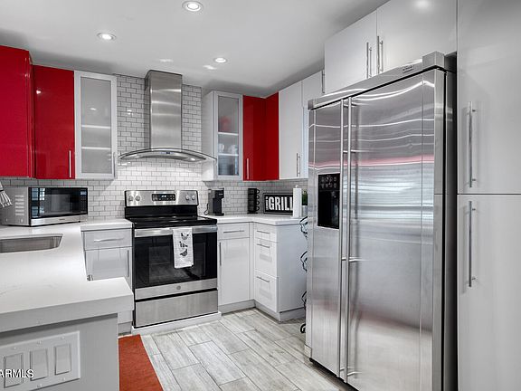 Experience the best of the Camelback Corridor in this stylish single level, FIRST-FLOOR condo! Featuring an urban-contemporary design, this 1-bedroom unit offers soaring ceilings, a bright open layout, and oversized windows that flood the space with natural light. The modern kitchen boasts white cabinets with bold red accents, granite countertops, and stainless steel appliances.