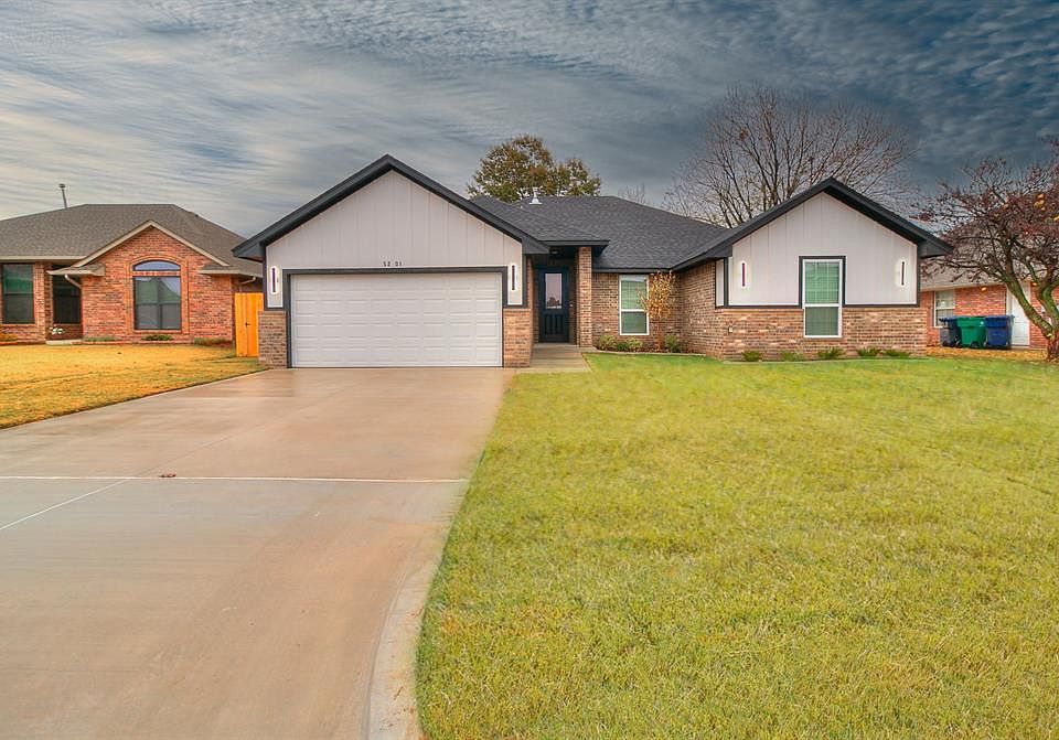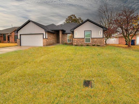 Outside, enjoy a low-maintenance yard and covered patio—perfect for outdoor dining or quiet evenings at home. With energy-efficient construction, modern design details, and thoughtful layout, this home offers comfort, convenience, and lasting value. Just only minutes from Tinker Air Force Base.