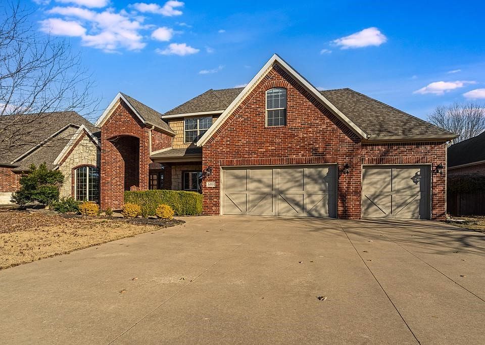 Located in highly desirable Lochmoor Club, this meticulously cared for brick & stone 4-bed, 2.5-bath, split floor plan home comes with a spacious 4-CAR GARAGE! The large kitchen features granite counter tops, stainless steel appliances, pantry & eat-in dining space. Main floor primary ensuite features a tray ceiling, dual vanities, jetted tub & walk-in closet. Three bedrooms & full bath with THREE vanities are upstairs along with a bonus room. Beautiful solid wood floors flow throughout the house. Off the entrance is a dedicated office with French doors for privacy. Dining room is flexible & can be used as a second living room. Level fenced backyard offers outdoor space & privacy. Interior painted & new zoned HVAC system (2025) & new roof, oven, dishwasher & microwave (2023). Subdivision amenities: pool, club house, playground, tennis, basketball, volleyball & pickleball coming soon. Close to Bentonville Community Center, Central Park Elementary, Bright Field Middle & Fulbright Jr High. 5 miles to Walmart campus.