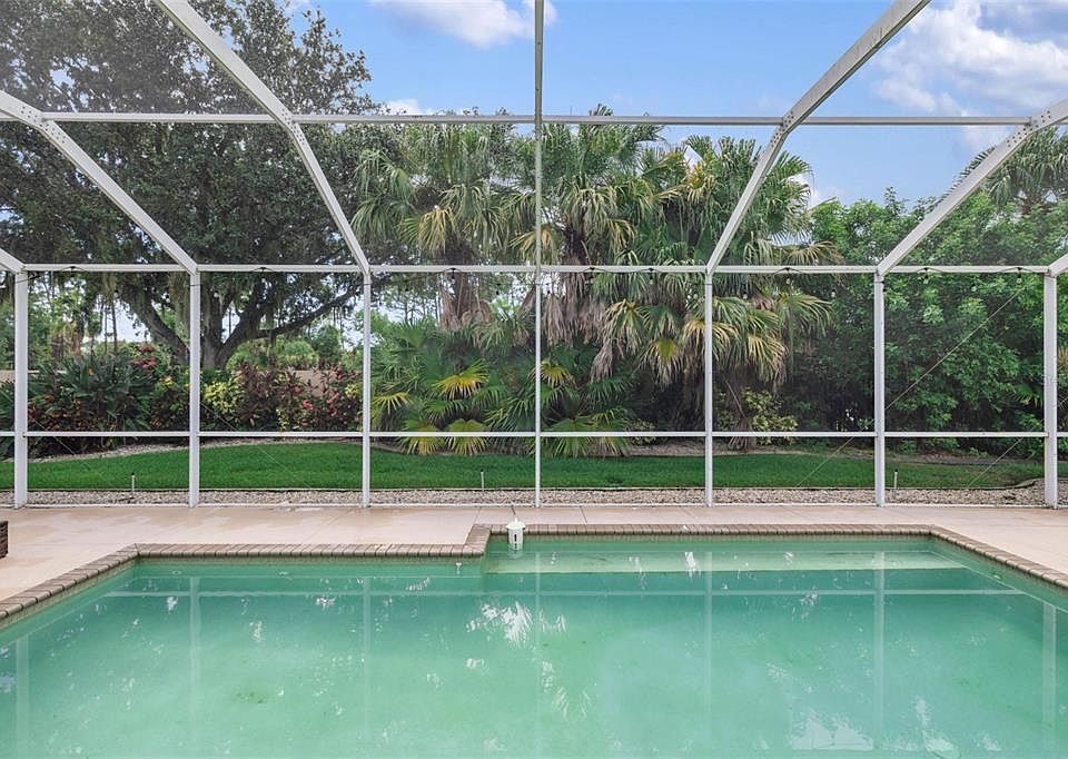$15,000 PRICING MAKEOVER – Your Slice of Florida Sunshine Awaits! Tired of scraping ice off your windshield and dreaming of flip-flops in February? Welcome home to 5201 Sabal Trace Drive in North Port – a private, updated saltwater-pool retreat inside one of the area’s few gated communities. This just-under-2,000 sq. ft. beauty is designed for both relaxation and entertaining, featuring 3 bedrooms, 2 bathrooms, a den/office, and an oversized garage with a golf cart entry. Inside, you’ll find high ceilings and abundant natural light streaming through every window. The kitchen is a culinary playground with granite counters, white cabinetry, stainless steel appliances, a pantry, and a perfect spot for your coffee bar by the breakfast nook’s sunny bay window. The living room is one of our favorite cozy spaces, located directly in the heart of the home, and certainly spacious enough to fit the largest of sectionals along with your other furniture. Just off the living room is the quaint dining room (featuring beautiful plantation shutters) overlooking the front of the home with a view of the pond across the street. The primary suite offers direct lanai access, dual vanities, a walk-in shower, private water close, and a spacious walk-in closet. Two additional bedrooms and a full bath are set apart for privacy on the other side of the home, and there’s wood-look tile throughout...no carpet to worry about. Outside, enjoy your private oasis with a screened lanai, sparkling saltwater pool, tropical landscaping, and complete privacy with no neighbors in sight. There’s room for a hot tub, space for seating and entertaining, plus an outdoor shower for convenience. The landscape of the property includes in-ground irrigation for ease of watering convenience. Note that this home is connected to City of North Port Water and Sewer as well. All the big-ticket updates are done: NEW ROOF in 2023, NEW HVAC SYSTEM in 2023, NEW WATER HEATER in 2022, an FPL electric car charger, a whole-house water softener, and HURRICANE PROTECTION with Kevlar roll-down screens and accordion shutters. This home is move-in-ready and updated in a sought-after gated community close to shopping, dining, golf, and Gulf beaches, now at an even better price. Come see why we love this property today, and prepare to be absolutely smitten with your new Florida lifestyle!