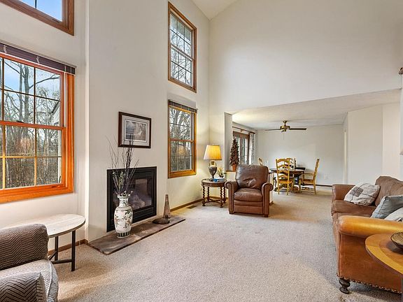 High vaulted ceilings in this open floor plan townhouse. Great location near Shady Oak Lake. Less then a block to walking paths and a short walk down the path to Shady Oak Beach and park. Large main bedroom with high ceilings and walk through bathroom. Gas fireplace in the living room with floor to ceiling windows. Large patio backing up to green space with privacy. Flex room is currently being used as an eat in kitchen, but could be an office/work area as well. Close to shopping, parks, restaurants. Come take a look and make this lovely end unit TH your new home. NEW central AC system being installed.