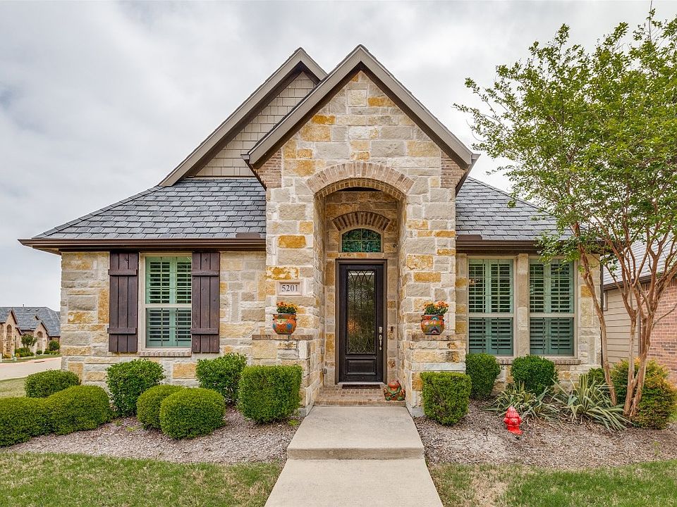 Gorgeous lock-and-leave low maintenance home on one of the best corner lots & greenbelt areas within the desirable Retreat of Craig Ranch! All the amenities you'll want including plantation shutters, wood floors, recently enhanced extensive double crown molding throughout downstairs, replaced light fixtures, recessed lighting added, updated kitchen with today's colors & backsplash, repainted interior & replaced upstairs carpet. Beautiful front door greets you with pretty entry & french doors to the study. Great open floor plan with wonderful kitchen including huge breakfast bar island, white cabinets with some glass fronts & walk-in pantry. Spacious living room is inviting with gas logs quick switch fireplace & mantel. Breakfast dining area is convenient for entertaining. Primary bedroom downstairs showcases tiered ceiling & crown molding with luxury bath. Upstairs you'll find the large 2nd primary bedroom, full bath and game room or versatile living area. Flagstone covered patio!