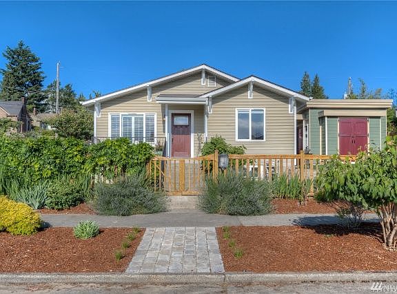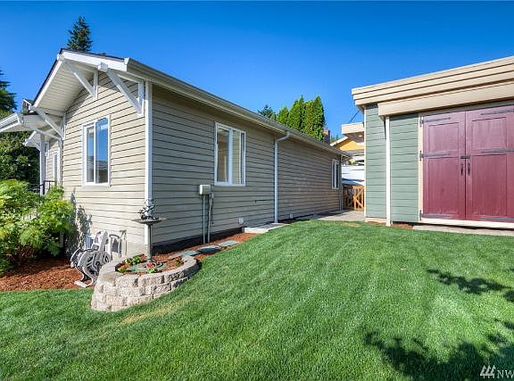 This charming bungalow with partial Sound views from the main floor will capture your heart. It's white plantain shutters, oak hardwoods, granite and maple kitchen, fully finished basement and shop will wow you! It's wired for surround sound, is freshly painted, has new landscaping and a sprinkler system. It's four car tandem parking, where one is covered is all set up for hosting this summer. New carpet is in the fully finished basement, ready for rec use plus 2 more bedrooms and a full bath.