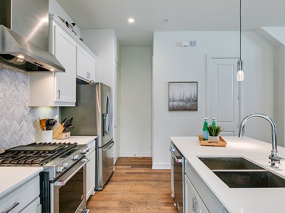 Stunning Three Level Corner Condo in Prime Lower Greenville Location! Experience the best of urban living in this beautifully designed three-level corner condo. Located in the heart of Lower Greenville, this home welcomes you with an elegant iron front door and rich hardwood flooring throughout the first and second levels. The second floor features a chef-inspired kitchen equipped with KitchenAid stainless steel appliances, quartz countertops, a large island, gas range, designer two-tone cabinetry, breakfast bar, and a pantry. The spacious living area boasts floor-to-ceiling windows, custom roller shades, and access to a balcony with a wrought iron railing perfect for relaxing. The top level offers two generously sized bedrooms, including a luxurious primary suite with soaring ceilings, abundant natural light, a large walk-in closet, and a spa-like bath featuring dual sinks and an oversized custom-tiled shower with frameless glass entry. The secondary bedroom includes its own ensuite bath with a tub shower combo. Additional highlights include an attached 2-car garage, guest parking nearby, a new HVAC system installed in October 2022, and washer dryer & fridge are included. Don't miss this incredible opportunity in one of Dallas' most vibrant neighborhoods!