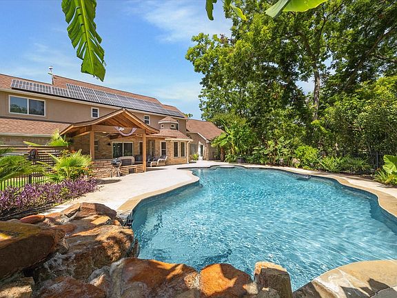 WELCOME TO 5202 CYPRESS GREEN LN in exclusive WOODS EDGE ESTATES! This 1.52-ACRE GATED LOT offers 4 OVERSIZED BEDROOMS, each with SITTING AREAS & EN-SUITE BATHS (5 total), plus a 3-CAR GARAGE. The FAMILY ROOM features VAULTED CEILINGS & a FLOOR-TO-CEILING STONE FIREPLACE flowing into the OPEN DINING AREA & GOURMET KITCHEN (UPDATED 2017). The PRIMARY SUITE includes a FIREPLACE, DRY BAR, PRIVATE PATIO, & a LUXURIOUS BATH with 2 CLOSETS, DRESSING AREA, SHOWER & SOAKING TUB. Upstairs boasts a GAMEROOM, while outside you’ll find a GATED POOL & COVERED PATIO. Major updates: ROOF 2022 w/ PAID SOLAR, 3 A/Cs 2017, GENERATOR 2021, POOL REFURBISHED 2015. Plus, a SHOP adds extra versatility. A hidden gem blending COMFORT, LUXURY & EFFICIENCY at an unbeatable new price! ***LOW HOA & LOW TAXES***