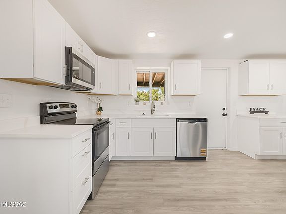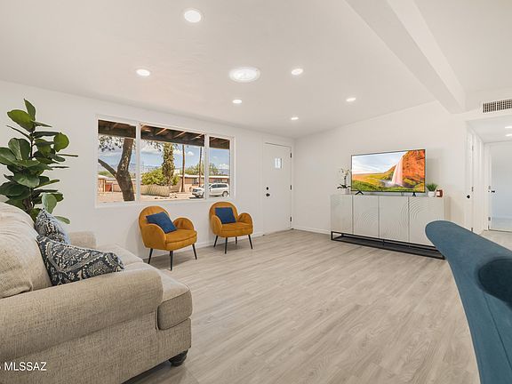 Charming fully remodeled home in the established Mayfair neighborhood! This home has a fully finished garage, big lot, manicured landscaping, PAID OFF solar, and NO HOA! Upon entering this 3 bedroom 2 bathroom open concept residence has vaulted ceilings and it is bathed in natural light. It has many upgrades such as recessed lights galore, upgraded luxury laminate flooring, fresh new paint, double pane windows, new water heater, new AC, and much more! The large living room will allow plenty of space for the family. The gorgeous 'L' shape kitchen has plenty of white cabinetry, sparkling Calcutta counters, and new SS appliances for the chef at home. The primary bedroom is ample, has crisp new carpet, LED lighting, and a large fan. That Segways into a fully redone private Oasis of a bathroom where you can unwind in. Relax in your large yard with an extended porch, block fencing, dual gates, and sunset views. With close proximity to parks, shopping, dinning, and DMAB. This centrally located beauty is ready to become yours TODAY!