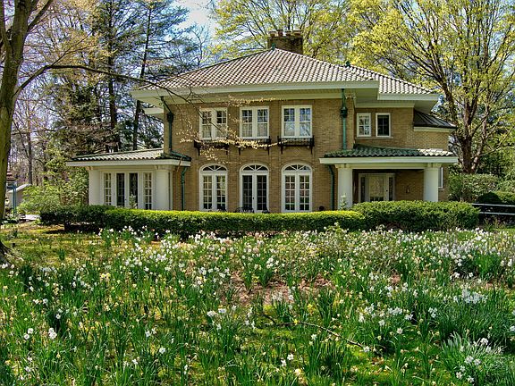 One Owner 100 year old Italian Renaissance with a hint of Prairie because the architect studied under Frank Lloyd Wright! This beautiful home has original pegged wood floors and woodwork plus Rookwood tiles and two fireplaces. Note the beautiful tile roof and expansive front veranda plus plentiful windows for ample light throughout. Known locally as the Daffodil House, Mark Holeman Landscape planted thousands of bulbs in the front lawn for the owner's wife when she could no longer go out into her garden so she could enjoy the spring plus many perennials from her windows. Mechanicals have been updated throughout the years and the owner has cared for this home lovingly yet it's time for a new generation to take over. Home is being sold AS IS.