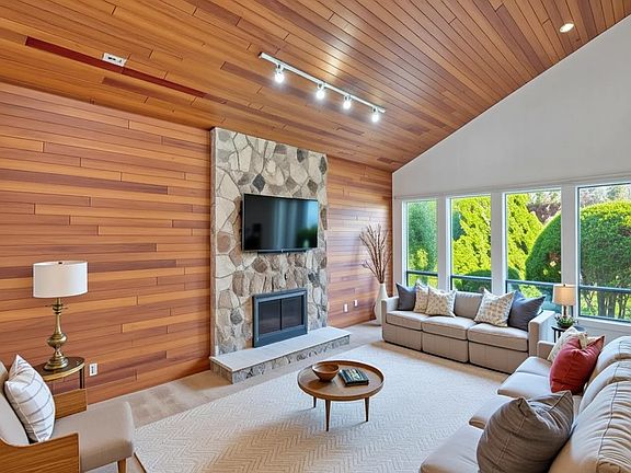 Nw contemporary split-levelNatural wood accentsVaulted ceilingsQuiet cul-de-sacMature hedges for privacy