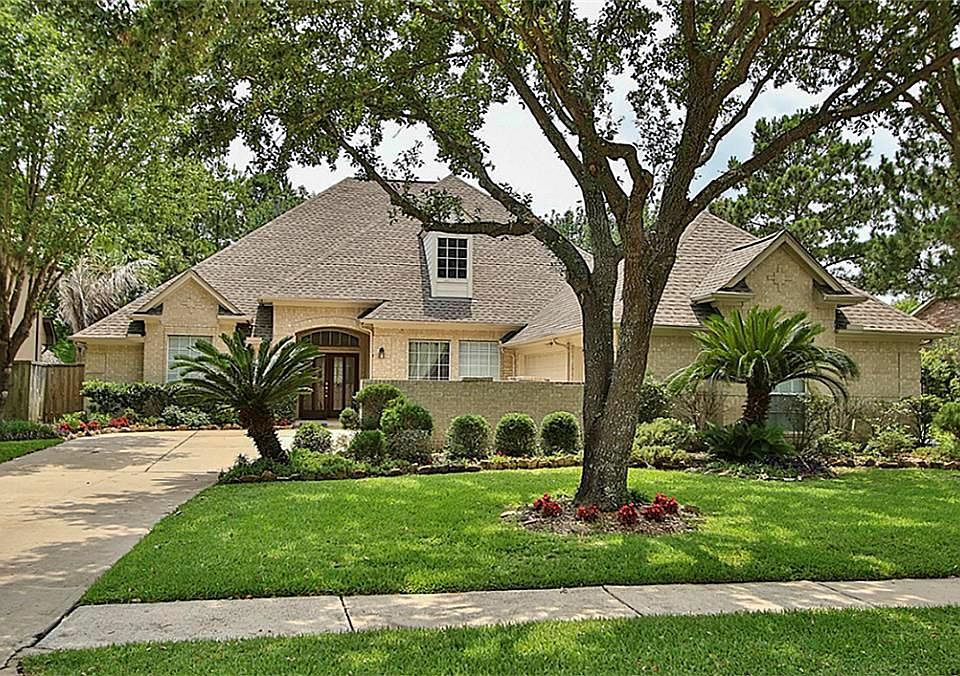 Home backs to private, peaceful waterfront property. ***Property did not flood*** Enjoy beautiful view from large, covered patio! Lovely home w/beautiful glassed entry door, tall ceilings, crown molding thru-out, attractive archways, and plenty of natural light. Enjoy two-way fireplace in den/Master BR. Over-sized Master w/nook for reading/PE equipment. Down draft range. Spacious laundry room. Eco water filter and water softener systems. Access to lake and green belt thru backyard gate. Natural preserve across lake. Very private! AC unit replaced 2017, roof in 2015. 24 hour manned entrance and neighborhood security patrol. Interior painting in progress. *** PROPERTY HAS NEVER FLOODED***