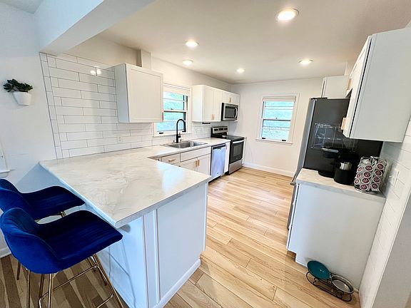 The basement is the perfect place to relax with a huge and comfortable L-shaped couch and 55" TV. Each bathroom upstairs and downstairs is newly remodeled. The laundry room includes shelving, a storage rack and recently installed Maytag Bravos Washer/Dryer. The fenced-in backyard is perfect for small dogs and includes a griddle with a new grill caddy.