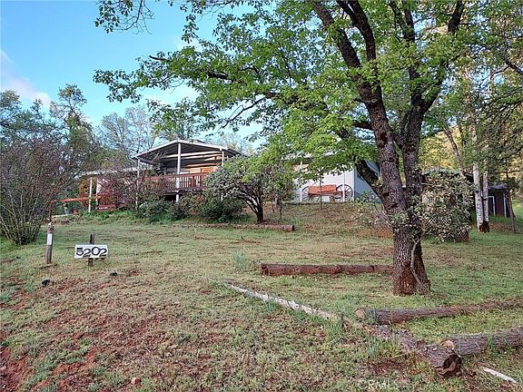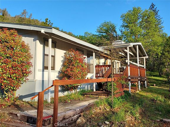 The manufactured home, 24 x 65 is approx 1500 sf. Mfg 1985. Covered decks front and back. 3 bedrooms (large Master) 2 full baths. Laundry/pantry room, new kitchen cabinets and stainless kitchen appliances. Some tile and Pergo flooring. Wood Stove. Propane furnace, central air. Roof eaves built out on all sides. Permanent foundation, permitted and recorded with Mariposa County (required for conventional financing) 2 car oversize storage garage, 3 bay carport with high (RV) center bay, Wood framed storage shed. Firewood shed. Partially fenced. Newer 2500 gal water tank with all new pumps, tanks and filters. Covered tank on concrete pad. Relined well pipe. Never lost water, tank was added as precautionary. 3.46 acres, wooded with Oak, Redbud, Ponderosa, Cedar, Manzanita, and even a few Redwood/Sequoia. Lots of cleared barriers for fire safety. 1 mile from Hwy 140, feels like the end of the road, as next neighbor lot is 160 acres, behind is 300 acre inaccessible parcel owned by Mariposa County. Horse pasture across the road. Cleared trails up the mountain behind the house. I'm the 2nd owner since developed. I have done or procured all repairs and renovations over the last 20 years with an eye on functionality, reliability and maintenance serviceability. Everything is functional at this time. Any renovations or repairs would be purely optional to accomodate buyers taste. Roof is approximately 15 years old, so should have at least 5 years left, no leaks. This is a primo location with an easy commute to Yosemite, about 25 minutes to El Portal, 10 minutes to Mariposa, just minutes from the Yosemite Bug Spa and Cafe. Plenty of level parking and turnaround space for your RV, cars, boats or any other toys. Front deck views Sweetwater Ridge, hence the name...Ridgeview Ranch.