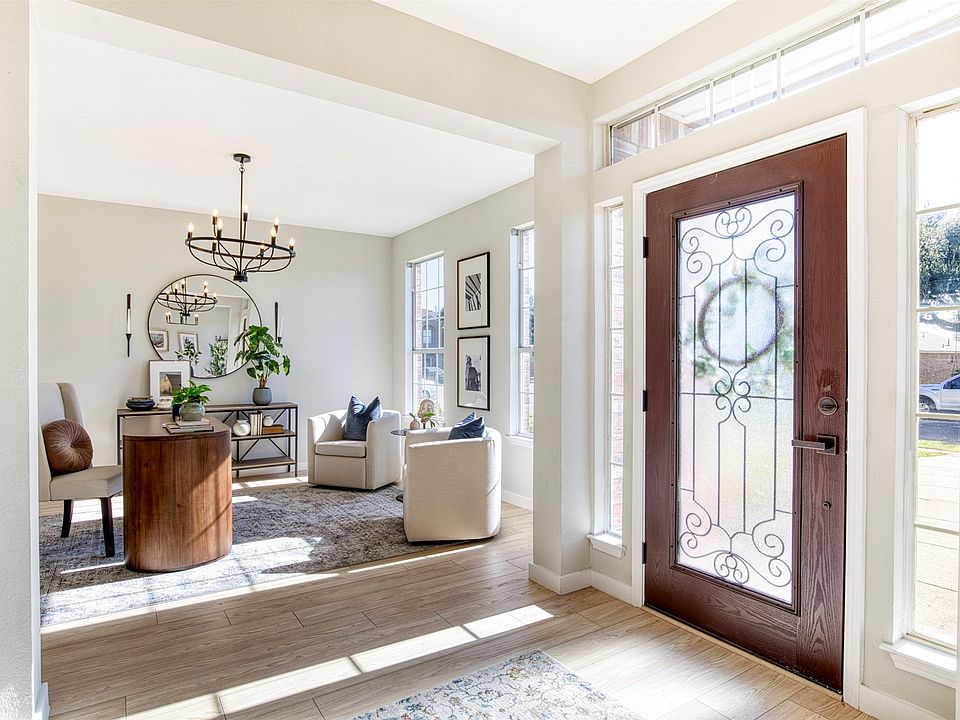 Ceiling fansStunning lvp flooringCorner lotQuiet cul-de-sacFlex roomNew landscapingSprinkler system
