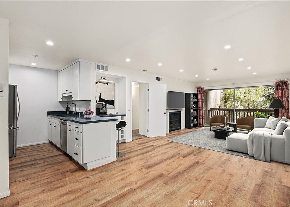 Proud to present this beautifully updated 2 bedroom, 2 bathroom, 1,116 sq ft condo in the highly sought-after Raintree community in Culver City. Thoughtfully renovated with over $80,000 in upgrades in recent years, the home features smooth ceilings, recessed lighting, and engineered wood flooring that elevate the modern appeal. The stylish kitchen is appointed with quartz countertops, a farmhouse sink, stainless steel refrigerator and dishwasher, and an electric stovetop—perfect for everyday cooking and entertaining. The open-concept living room includes a decorative fireplace and flows seamlessly to the extended balcony, surrounded by lush trees and natural light for a peaceful indoor-outdoor experience. Ideal for privacy, the two bedrooms are located on opposite ends of the unit, each with direct balcony access and its own en suite bathroom. The primary suite offers soft carpeting, two sliding-door closets, and a beautifully remodeled bathroom featuring penny tile, modern finishes, and a glass-enclosed shower. The secondary bedroom hosts a walk in closet and adjacent newly tiled bathroom with shower and deep tub. Additional highlights include central heat and air and two assigned parking spaces. HOA includes water, trash, sewer, gas, basic cable and internet. Resort-style living awaits at Raintree, where residents enjoy a wealth of amenities: a heated pool, hot tub, clubhouse, fitness center, scenic walking paths, a large tranquil lake, 24-hour gated security, and even a volleyball court. All of this in the heart of Culver City, just moments from Downtown Culver City, Sony Studios, Baldwin Hills Scenic Overlook, Westfield Mall, countless shops, restaurants, and short distance to two high-ranking elementary schools (Farragut & Linwood E. Howe), Culver City Middle school and Culver City high school.