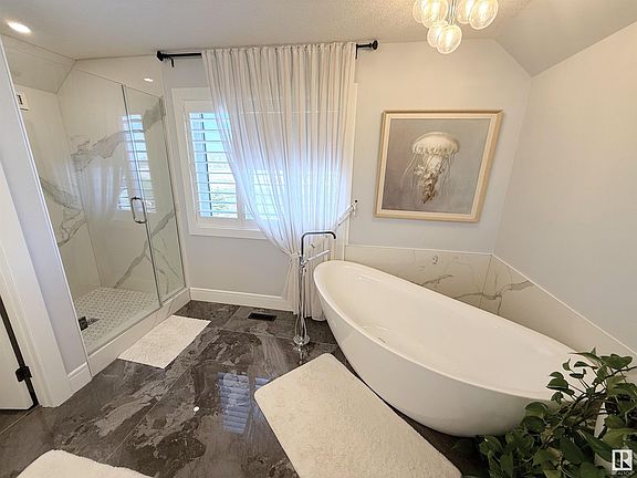EXECUTIVE BUNGALOW & ATTACHED TRIPLE GARAGE (34Wx28L, heated, 3-pc bath) on 3.04 acres OUT OF SUBDIVISION, 10 mins to Edmonton. Custom built in 2020, this luxurious 2,960 sqft (plus full basement) home features central AC, porcelain tile & Engineered Hardwood floors , 10’ ceilings and a fabulous open floor plan. Sleek living room w/ gas fireplace & built-in shelving. High-end gourmet kitchen w/ huge eat-up island, granite counters; walk-through pantry with sink & beverage cooler; dining room with deck access. Elegant owner’s suite w/ private balcony, walk-in closet & 5-pc ensuite with soaker tub. Finishing off the main: 2nd bedroom & office w/ 5-pc Jack & Jill ensuite, laundry room w/ sink & 2-pc powder room. Upper guest suite: 4-pc ensuite, walk-in closet & balcony. Basement: 2 additional bedrooms, 4-pc bathroom, luxe rec room w/ gas fireplace & gym. Landscaped fully fenced yard, no-maintenance decks, concrete firepit area, dog run, garden boxes, paved drive w/ power gate; 100amp power for future shop.