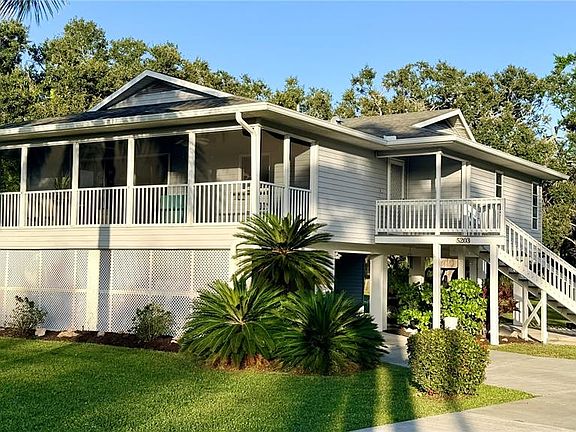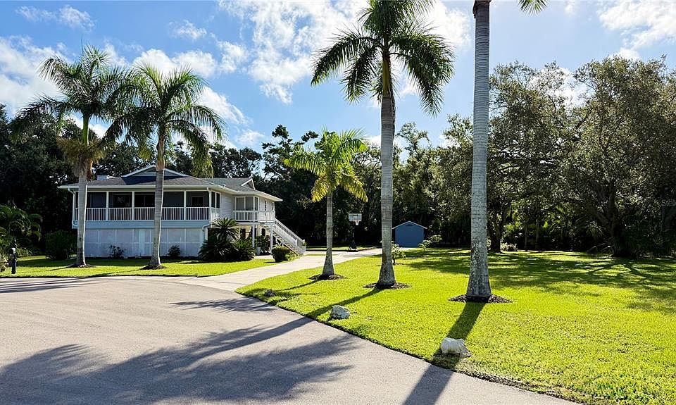 A coveted location on a spacious double lot on sought-after Snead Island! This beautiful home sits at the end of a private, waterfront cul-de-sac on the peaceful western edge of Snead Island, where no homes on the cul-de-sac experienced flooding during recent storms, including those caused by Hurricane Milton or Hurricane Helene. Elevated among grand oaks and lush landscaping, the residence features 3 bedrooms, 2 bathrooms, and an open-plan kitchen with granite countertops, updated cabinetry, a breakfast bar, and newer stainless steel appliances. Enjoy water-facing sunsets from the large screened porch or relax by the wood-burning fireplace in the living room. The downstairs includes a private study/bonus room, laundry room, entry hall, and ample covered parking for vehicles, golf carts, or kayaks. The expansive double lot provides rare flexibility to expand—add a pool, guest house, or create a family compound. Exterior highlights include an RV/boat parking pad, a powered shed, a new septic system, a fire pit, and a deep irrigation well with a new pump. Picturesque community dock offers easy kayak launch access, fishing, and sunset meditations. Steps to Emerson Point Preserve and Bradenton Yacht Club, and a short drive to area beaches, and everyday conveniences. Connected, yet truly miles away. Curb and street appeal must be seen to be appreciated.