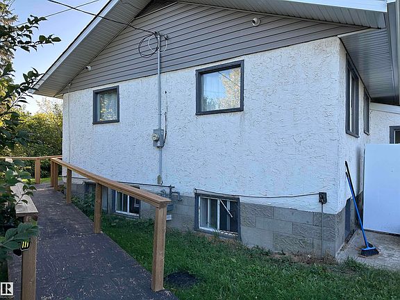 Wow! A PRIVATE 3.05 TREED ACREAGE right in the town of Bon Accord and on municipal water and sewer! Renovated raised bungalow with wheelchair ramp and separate basement entry for the in-law suite. 3 bedrooms up, 2 down. Each level has a 3 piece bath and laundry facilities. 2nd kitchen and family room in basement. New shingles, furnace and central air conditioning in 2022. Previous upgrades include 100 amp power service, new electric in basement and plumbing lines updated to PEX. This is a private setting with gated, coded remote entry. The perimeter of the property is treed with a grassy clearing for the yard site. You'll find mature apple, crab apple & cherry trees, along with rhubarb, raspberry and lilac bushes. There's also two outbuildings with cement floors, one building is powered, both great for storage/garage/workshop. This lot is Zoned R1A - Residential Low Density which allows for duplexes with a possibility for further subdivision of the existing 3.05 acre parcel ... or keep as is!