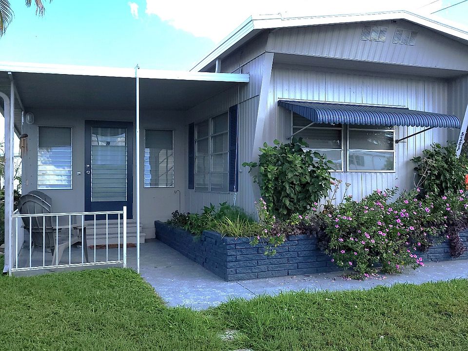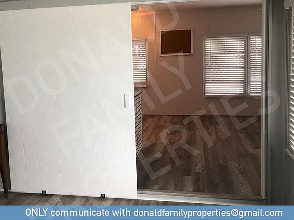 Interior of mobile home is renovated with new flooring, new cabinets, fridge, microwave, gas stove. There is 1 bedroom and full bathroom, and then an enclosed Florida room with a half bath. There is a laundry room (with hot water hookup for washer)and storage attached to the carport. No pets allowed.