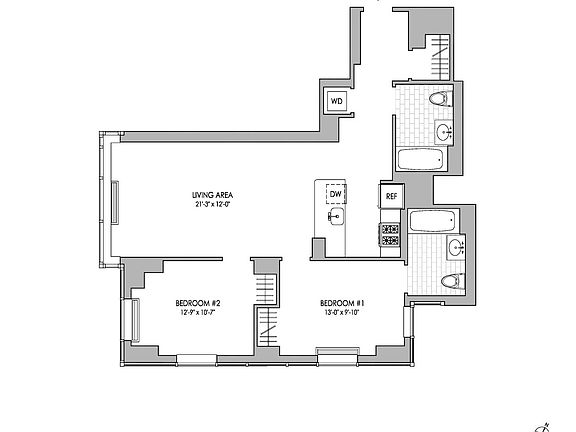 Fantastic 2 bed, 2 bath apartment featuring an open kitchen, spacious living area with triple exposure, in-home washer/dryer, two corner bedrooms, ample closet space, and direct city views over the water. Gross Rent $6365.