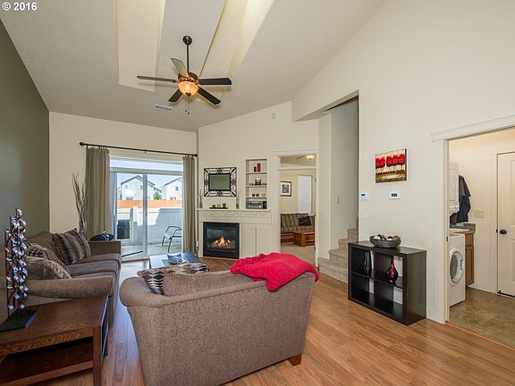 Serenity, Convenience & privacy w/only 1 shared wall! Spacious Great rm living w/gas frpl & built-in casework. Gourmet kitchen, granite tile counters, breakfast bar, cherry cabinets, SS appliances. Master on Main or Guest Rm w/patio access, w/i closet & bath. Laundry on Main too w/utility sink. Convenient home-office space off kitchen w/lots of cabinet space. 2 bdrms up w/Jack&Jill Bath + xtrflex rm up. Attached deep single car garage.