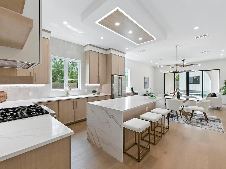 Nestled in a quiet cul-de-sac this spacious 4-bedroom, 3.5-bathroom home offers 2,872 square feet of beautifully designed living space, blending modern luxury w/thoughtful functionality. Ideal for multi-generational living or hosting guests, the home features two full primary suites, each w/ generous walk-in closets & spa-inspired bathrooms outfitted w/dual vanities, a soaking tub, & a luxurious steam shower—creating a private retreat exuding comfort & elegance. The heart of the home is an open kitchen, designed for both daily living & unforgettable entertaining. A dramatic waterfall island, open shelving, + stunning custom cabinetry are complemented by a dry bar, wine fridge, & sleek designer finishes. Throughout the home, carefully curated designer light fixtures & statement wallpaper add sophistication & style, enhancing the home's unique character and high-end appeal. Rich tile & wood flooring anchor the space, while cathedral ceilings, recessed lighting, + smart features—including a smart thermostat & ceiling fans—offer a balance of beauty and efficiency. Step outside into your own private oasis. A custom in-ground pool invites relaxation, while the spacious pool house provides a flexible extension of the home—ideal for entertaining, guests, or a private retreat. A balcony overlooking the backyard offers yet another serene space to unwind. Perfectly located just minutes from downtown Austin, you’ll enjoy walkable access to local favorites like Civil Goat Coffee, Fiesta Market, & the legendary Micklethwait Craft Meats—Everyday essentials like H-E-B, multiple CapMetro bus stops, & quick access to MLK Blvd and Airport Blvd make commuting effortless. Meanwhile, Lady Bird Lake and Zilker Park are just minutes away, offering endless opportunities for outdoor play. With its luxurious feel, designer touches, & versatile indoor-outdoor living, this is truly an entertainer’s dream—a rare East Austin gem that delivers style, comfort, & location in one stunning package.