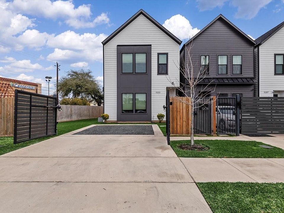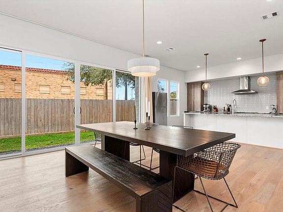 Step inside to find an open-concept layout with hardwood floors, a cozy gas fireplace, and modern glass sliding doors that create a seamless connection between indoor & outdoor spaces. The chef’s kitchen features Carrara marble countertops, custom cabinetry, Bosch appliances, and an induction cooktop. A large island provides extra seating, making it the perfect space for entertaining. Upstairs, the spacious primary suite is filled with natural light and a luxurious en-suite bath with floor-to-ceiling designer tile, a walk-in shower, and a freestanding soaking tub. Enjoy the fenced yard for privacy, a back storage room for convenience, and no HOA—giving you flexibility for a profitable Airbnb. Located near the Metrorail, this home offers easy access to Downtown, the Med Center, and *future* World Cup venues, all while being surrounded by restaurants, bars, and shops.