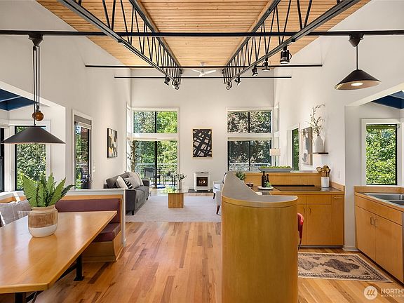 This bright and modern custom home is set on a sunny acre and features soaring ceilings, an open floor plan and creative built-ins. Enjoy the privacy of this retreat, and explore the nearby charming Pleasant Beach Village with its vibrant restaurants, shops and bakeries. Outdoor spaces include the expansive brick patio, west-facing deck and garden and vegetable beds. Convenient to schools and the ferry to Seattle as well as Fort Ward Park and Gazzam Lake.