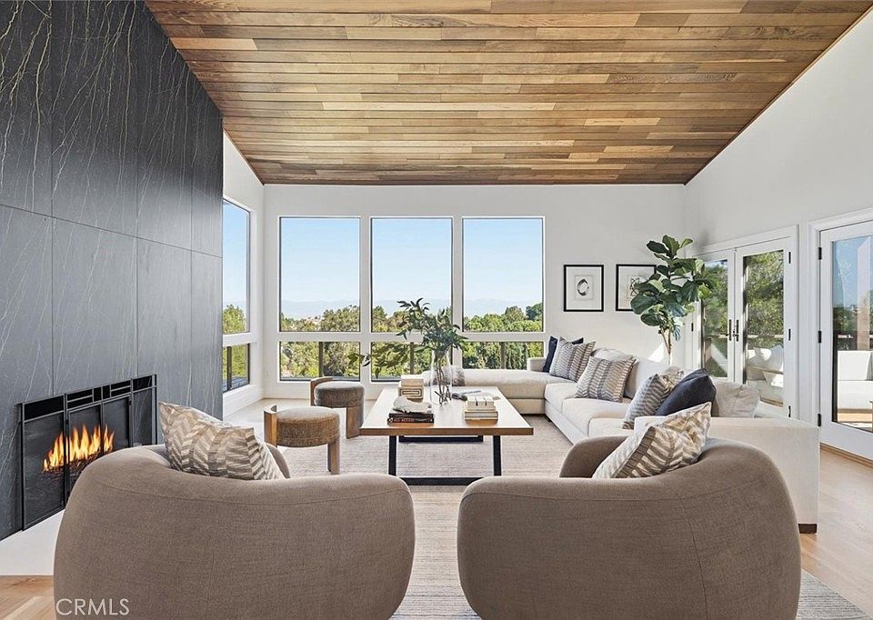 Nestled in the quiet hills of Rancho Palos Verdes, this is the private luxury home you have been waiting for. Boasting stunning views and elegant finishes throughout, this home is a true retreat. Set at the end of a tree-lined cul-de-sac and private driveway, this extensively remodeled modern residence blends timeless design with thoughtful craftsmanship. Resting on over half an acre, this home's flexible floor plan includes four bedrooms, formal living and dining rooms, and a versatile flex space ideal for an office, media room, or home gym. The gourmet kitchen is a showpiece with Subzero refrigerator, Wolf induction cooktop, Wolf oven, Wolf warming drawer, microwave drawer, Bosch dishwasher, and large island perfect for entertaining. The spacious primary suite offers vaulted ceilings, sweeping city views. The spa-like primary bath features a freestanding soaking tub and an expansive glass-enclosed shower. Each bathroom features modern finishes and attention to detail, such as LED-lit mirrors. The generously-sized downstairs family room boasts serene views and features a built-in bar area with mini fridge and convenient bar sink. Additional highlights include engineered hardwood flooring, thoughtfully placed lighting, and custom built-ins throughout. Outside, multiple patios and deck provide calm spaces for dining and entertaining, complemented by a hot tub and lush landscaping. The three-car garage features a work bench with built-in cabinets, an additional storage room with large utility sink, and the large driveway provides ample parking for guests. Surrounded by nature and framed by panoramic downtown and city-light views, this property offers a sense of calm and seclusion that is rare to find.  Conveniently located near Peninsula Center’s shops and restaurants and within the award-winning Palos Verdes Peninsula school district, this home offers a perfect blend of quiet luxury, privacy, and sophistication. A rare opportunity to experience refined living.