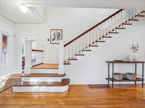 Amazing 1922-Craftsman with original qualities! Gleaming hardwood floors throughout. Vaulted ceilings and beautiful updated windows invites natural light into this space. Lovely sunroom with french doors off living room for entertaining or sitting by the fireplace and enjoying a peaceful morning. Office off entryway. Built-ins in the dining room leading to a lovely, paver-patio with Trex decking, fully fenced with a shed. Nice territorial views! Upstairs you will find four bedrooms. Light and bright with updated bathroom. This home has been remodeled with a fully-finished living space in the basement with its own separate entrance. Attached garage. Tankless water heater, updated furnace and AC, newer sewer line. This home offers modern conveniences, while containing it's original charm. Call agent to show. [Home Energy Score = 4. HES Report at https://rpt.greenbuildingregistry.com/hes/OR10233874]