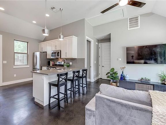 This East Austin listing is modern/contemporary design with high ceilings, lots of windows, and large amounts of natural lighting. The Home features custom white Shaker cabinets, quartz counter tops,stained concrete flooring,stainless steel appliances. The master bed/bth located upstairs is airy and spacious containing balcony access over looking the property. The house features a large backyard with much privacy and greenery. Please park on street to avoid blocking in neighbor