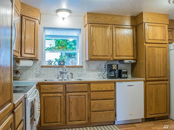 Well cared for tri level in great location. Spacious kitchen has lots of cabinets & built in pantry. Living room is just off the kitchen with gas fireplace. Downstairs large family room has enough room for a pool table, theater, or just relaxing near the 2nd gas fireplace. Second backyard access from family room has ¾ bath & laundry. Nice sized shop is tucked away in low maintenance backyard. Covered patio with extended deck is great to enjoy all year round. Nice neighborhood, close to Boeing.