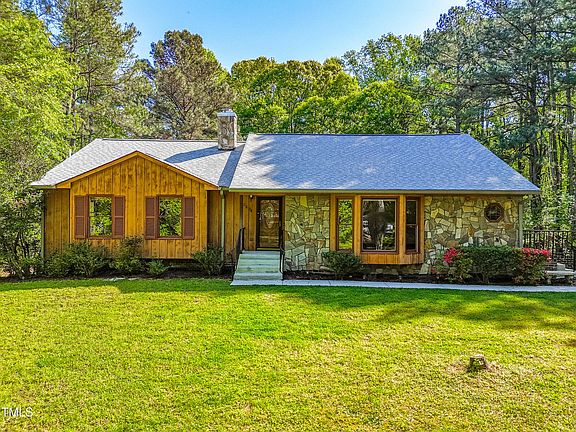 RARE OPPORTUNITY! A MUST SEE! Don't miss this 4-Bedroom, 3-Bathroom RANCH home with a FINISHED BASEMENT on 2.7 ACRES in Raleigh! NO CITY TAXES, NO HOA! Wonderful PRIVATE, flat wooded lot on quiet cul-de-sac street. So much space with over 2,400 SF. WALK-OUT BASEMENT has the 4th bedroom, the 3rd full bathroom, a large RECREATION ROOM with wood-burning stone fireplace and a large utility room for storage! The NATURAL wood trim, doors and cabinets have been preserved. Gleaming HARDWOOD floors. NEW ROOF (2021), WATER CONDITIONER (2023), CENTRAL VACUUM (AS IS). COVERED PORCH/DECK. 2-car garage plus plenty of parking on a long paved driveway! Backyard has a large FENCED-IN area and a SHED. Great home and property for ENTERTAINING! SPARKLING and MOVE-IN ready with a great opportunity to update as you wish to make it your own. AMAZING LOCATION! Convenient to downtown Raleigh, 540, the new Publix and shopping center on Buffaloe Road. The time is NOW! Say YES to this GEM!