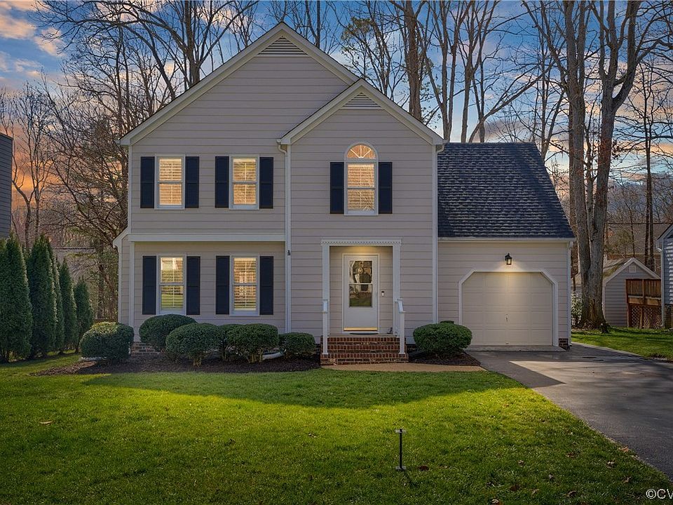You are going to LOVE this tastefully updated, 4 bedroom, 2.5 bathroom, garage home situated on a gorgeously landscaped lot in the highly desirable Woodlake neighborhood with award winning schools & resort style amenities. WALKING distance to the Swift Creek Reservoir and Woolridge Elementary school! Features/Updates include; Hardwood floors throughout the 1st & 2nd floor, Updated kitchen cabinets, backsplash, NEW 30 year dimensional shingled roof (2020), Freshly painted exterior (2024), NEW water heater (2024), OVERSIZED screened-in porch, True wood plantation shutters, NEW Crawlspace vapor barrier (2024) & so much more! As you pull into the paved driveway you are greeted with tons of curb appeal & attached garage. Entering the foyer you're welcomed with handsome hardwoods throughout. The spacious family room on your left showcases a gas fireplace, crown moulding & lighted ceiling fan. With an open concept, the family room flows to the dining room with decorative pottery barn lighting and french door access to the screened-in porch. The kitchen boasts updated cabinets with crown moulding, newer stainless steel appliances, an island w/ pendant lighting and tons of cabinet/counter space. Off of the kitchen is the peaceful back deck & screened-in porch overlooking the private backyard & firepit area. Upstairs there are 4 bedrooms! The primary suite offers an ensuite full bath & walk-in-closet. All three additional bedrooms offer overhead lighting. The dedicated laundry room and hall bath complete the second floor. Floored pulldown attic for more storage! With reservoir access, walking trails, TWO resort style pools, docks, pavilion, playgrounds, sport fields and so much more the amenities Woodlake offers are second to none. Hurry and schedule your showing!