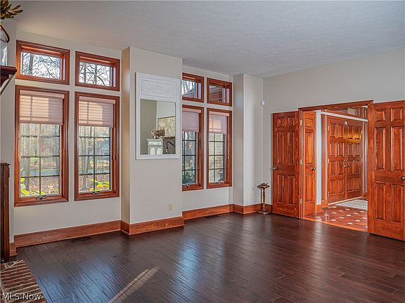 Classic and tudor-inspired 5 bedrooms, 4.5 baths home on 4.15 acres with inground pool. The exterior of the home is wooded and beautifully landscaped with mature hydrangeas, boxwoods, hollies, hostas, and ornamental grasses, tiered paver patio area, and a a romantic alcove with small pond. The foyer entrance has warm parquet floors and an open angular staircase. Right of the foyer, through double doors, is a generous sitting room with a walled brick fireplace and hardwood floors that are found throughout most of the house. Behind the walled fireplace is a library room which features the backside of the fireplace, bookshelves and access to the backyard. Moving back to the foyer area; off to the left through, double doors is the formal dining room with an extended morning room. The back of the house services the guest en suite, laundry room, half-bath, kitchen, additional morning room, and a family room with a third fireplace. The kitchen features granite countertops, an island cooktop, built-in oven and an apron style copper sink. Upstairs you will find 4 additional bedrooms which includes the primary bedroom with a sitting room. Through the back bedroom is a large finished bonus room with anchored shelving and hardwood floors. More finished space can be found in the lower level with a workout room and a recreational room with the fourth fireplace. If you’re looking for a spacious home on a private cul-de-sac drive with an inground pool, this is a must see property.