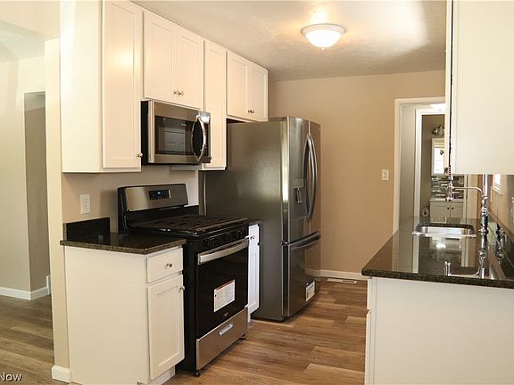 Move right in to this beautifully updated, ranch style home! Eat in kitchen features granite counters, white cabinets, brand new stainless gas stove, microwave and fridge. Luxury vinyl wood floors throughout kitchen and living room. 3 nicely sized bedrooms with new carpet and spacious closets. All new outlets, light switches, interior doors and knobs, closet doors, light fixtures, blinds on all windows and fresh paint throughout home. Updated Full bathroom with tiled tub, new vanity and tiled floor. Finished lower level is huge--could be a great movie room, toy room or home gym--plus a 4th bedroom or office. New exterior doors & storm doors, new vinyl windows, new roof, new HVAC, new electric panel, new hot water tank, glass block windows, new driveway and front porch steps--this home has been redone top to bottom! Rear covered patio is perfect for summer meals or relaxing. Freshly painted exterior. 2.5 car garage.