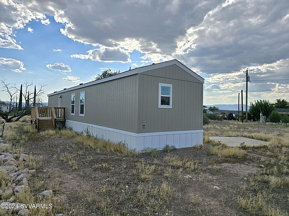 Rimrock AZ rural living on this 0.89AC parcel with private well and sanitation system. Brand new 14x66 3 bedroom 2 bath Clayton West manufactured home with gabled asphalt shingle roof. Masonite siding, vinyl skirting, post and pier, with central air conditioning, total electric, Stainless Refrigerator, R/O, washer/dryer hook ups, 8 ft ceilings, open floor plan, viewing deck on the back. Excellent views from this property, mostly fenced. Yavapai County paved maintained roads to property. Land has lots of possibilities for small farm animals per YC Rl-35 zoning farm animal requirements. Plenty of room to park your RV. New 220 Electric panel.